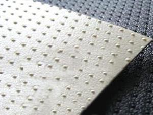 毛糙的表面是一種特殊的共擠加工工藝的結(jié)果,單糙面、雙糙面、柱點防滑、支腳鉗固系列,加糙PE板材增加了摩擦系數(shù),防滑功能,更加適用于陡坡及垂直防滲,提高工程穩(wěn)定性,從而最終使加糙PE板材所能承載的可用容積達到最大化,適于鋪設(shè)陡峭斜坡的特性在節(jié)省成本的同時也提高了設(shè)計能力。